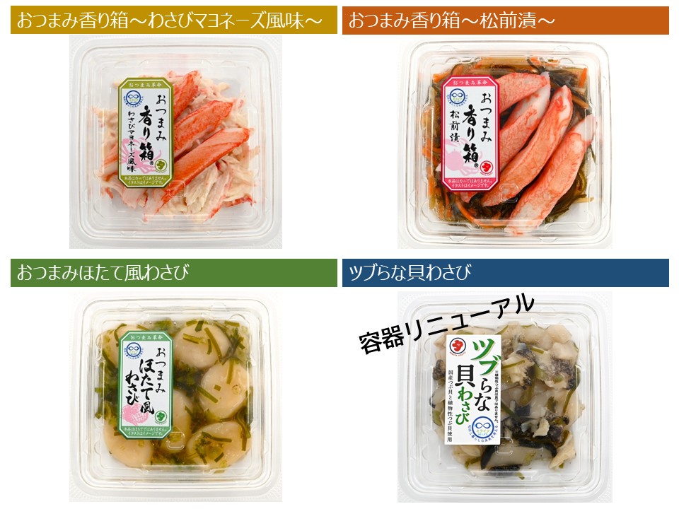 また、それに合わせ”ツブらな貝わさび”も容器をCO2 30%削減の容器へ変更。