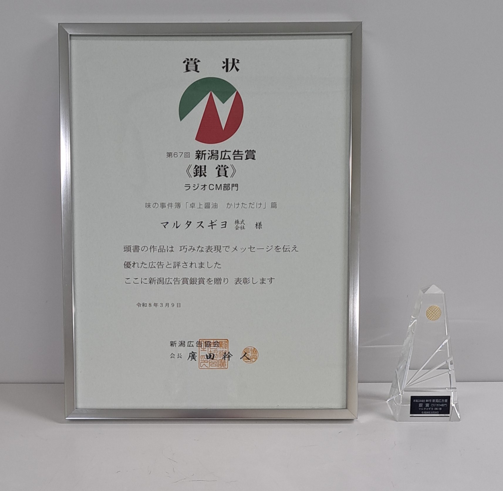 卓上醤油シリーズ ラジオCMが「新潟広告賞」ラジオCM部門銀賞受賞